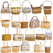 手工编织木片装饰藤编母亲节鲜花花篮田园伴手礼手提包插花小篮子