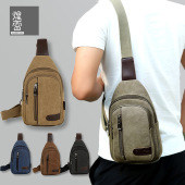 帆布胸包男商务出行简约复古耐磨大容量斜挎包多层休闲胸前包轻便
