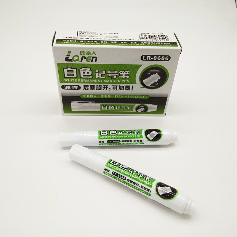 绿泌人8686不掉色可加墨白色油性记号笔钢材皮革标记笔陶瓷大头笔