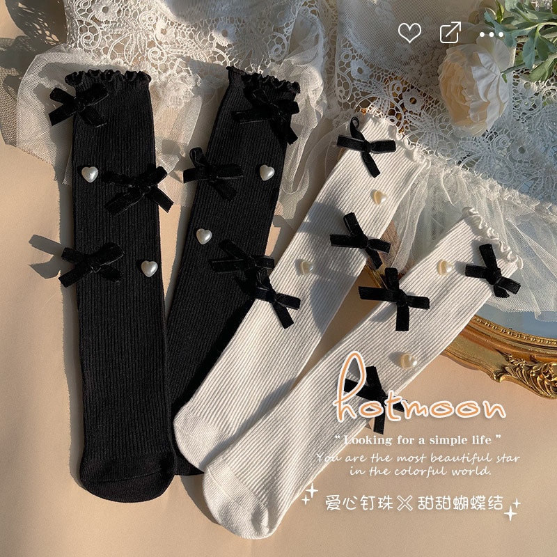 公仔小腿袜女童袜子中筒袜拼色立体女孩薄款透气公主袜蝴蝶结卡通