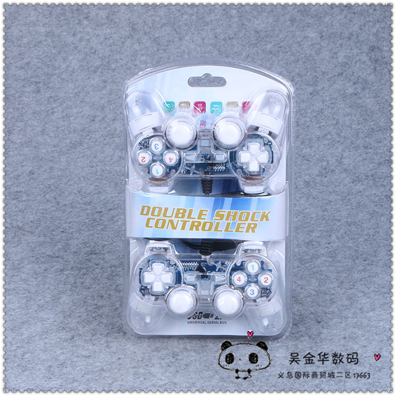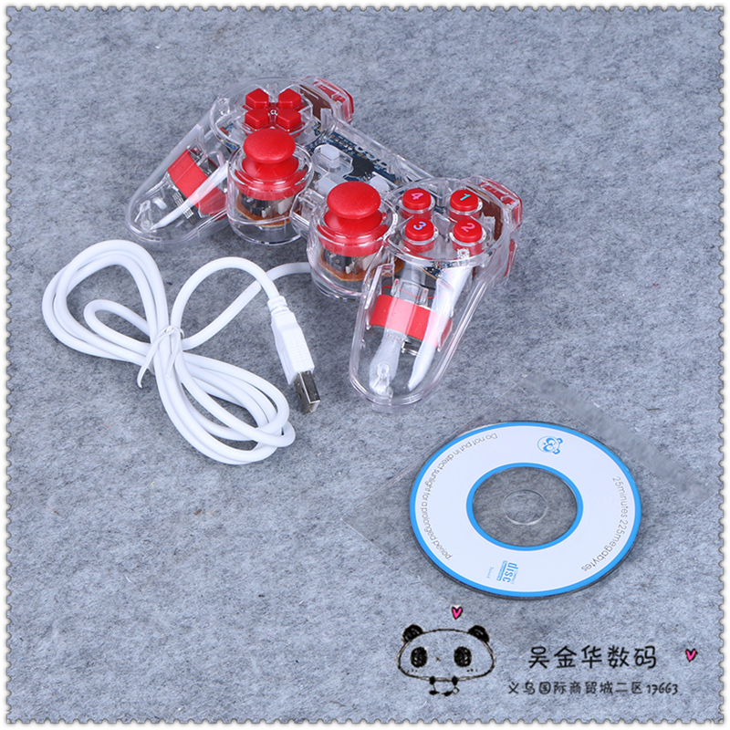 通用电脑游戏手柄透明usb接口有线 双摇杆