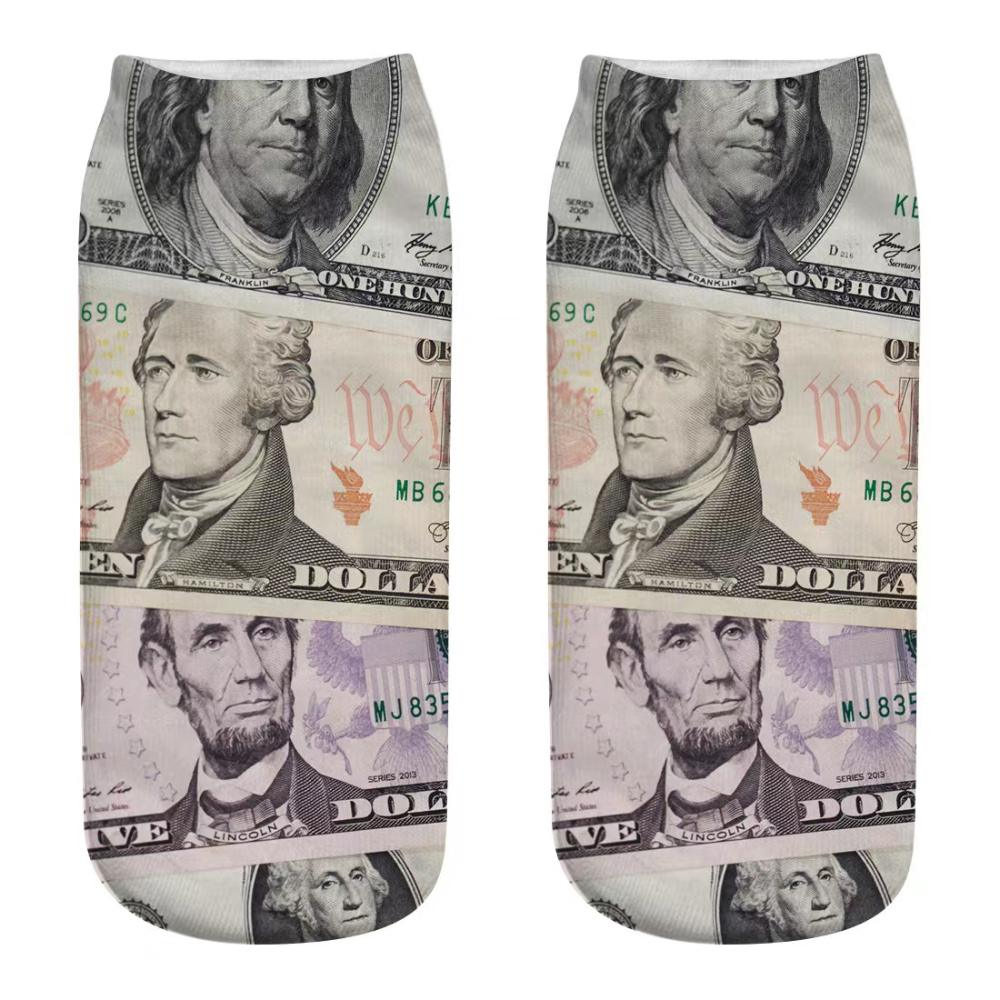 3D美元印花袜子 卡通短袜 百搭透气吸汗潮流印花船袜现货直供