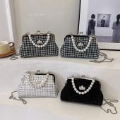 法式高级感满钻珍珠手提包2025时尚精致链条夹子包百搭晚宴包斜挎
