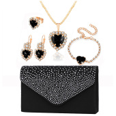 欧美爱心水钻项链耳环戒指手链四件套高档新娘饰品晚宴包手提包女