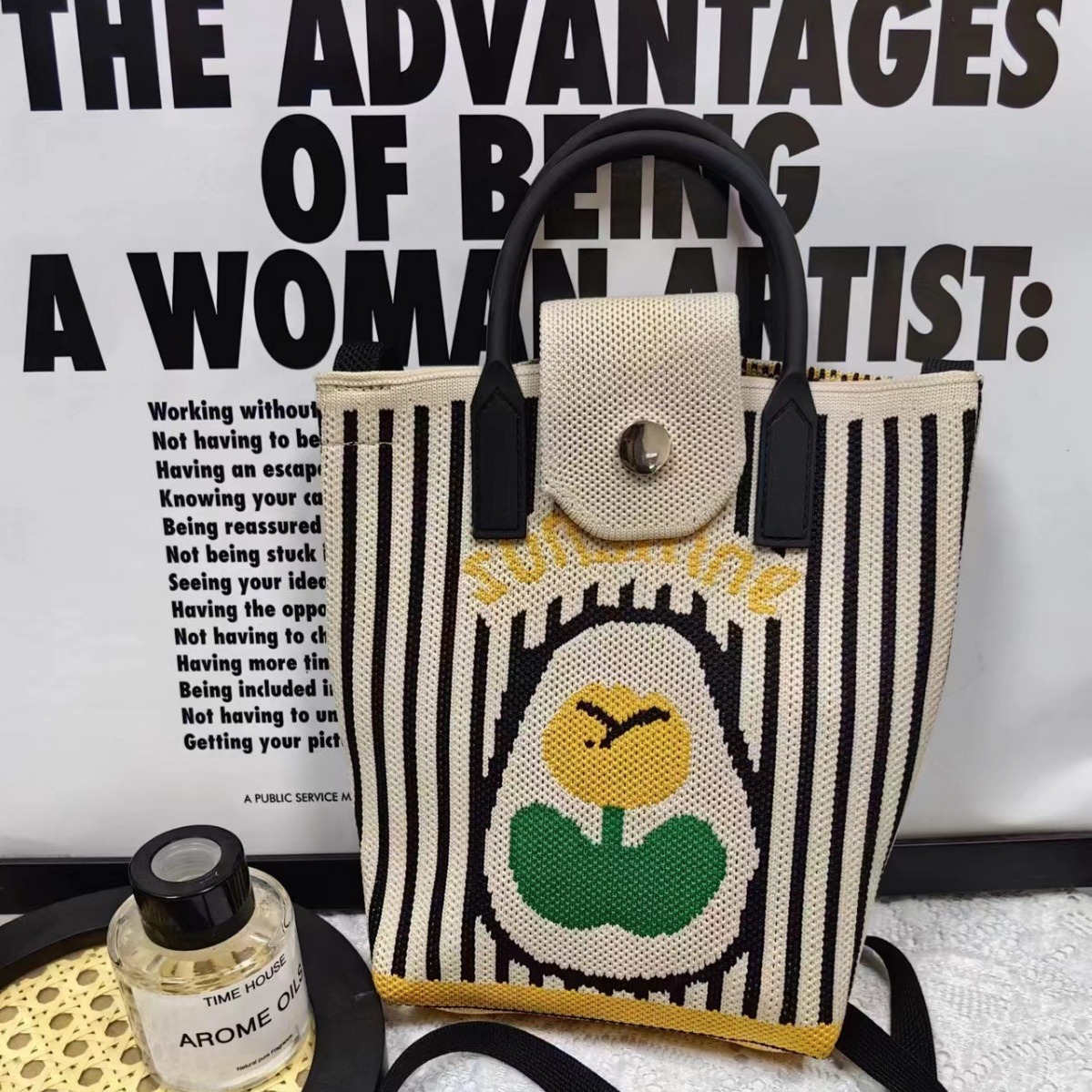 小众设计糖果色简约针织手提包手拎包女百搭大容量托特包厂家批发