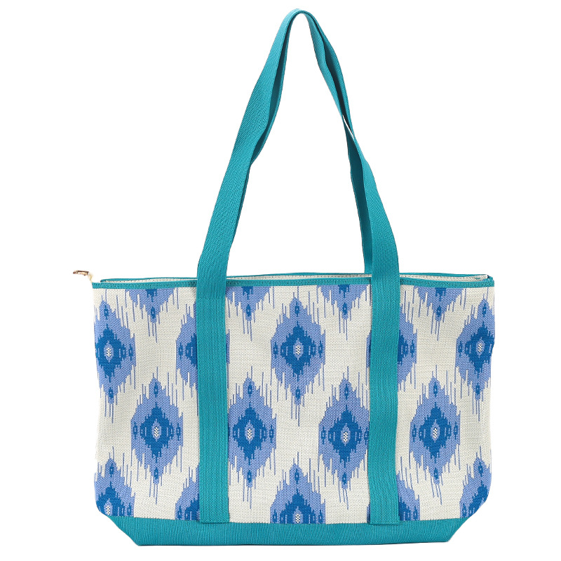 时尚新款手提包艾德莱斯风图纹针织手提托特水桶包出游大容量拎包