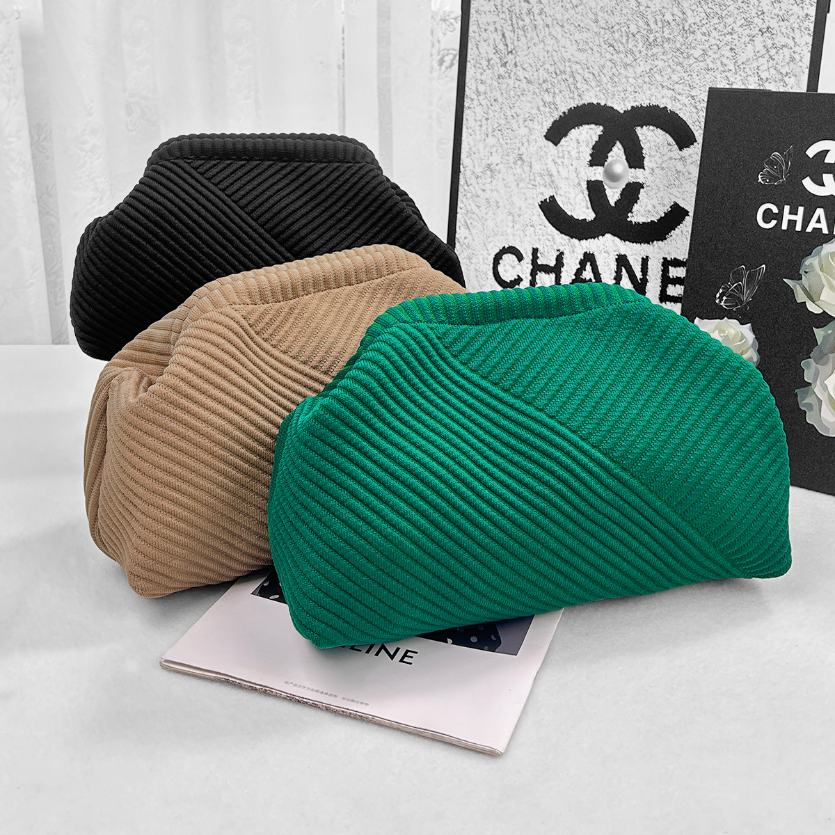 新款云朵针织手拿包潮流纯色化妆包时尚百搭轻便随身收纳包手机袋