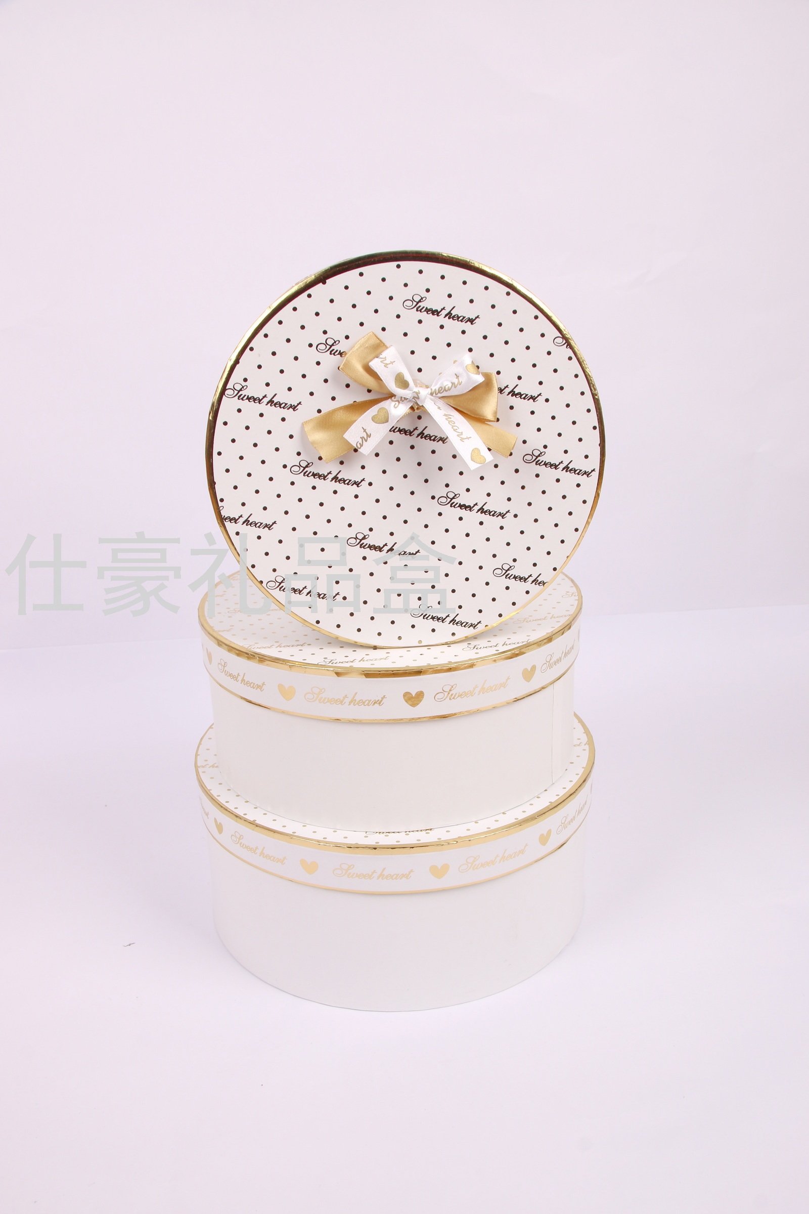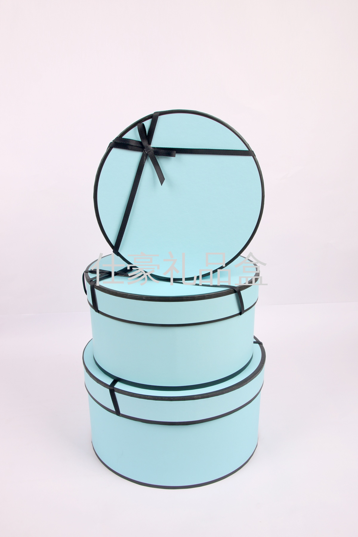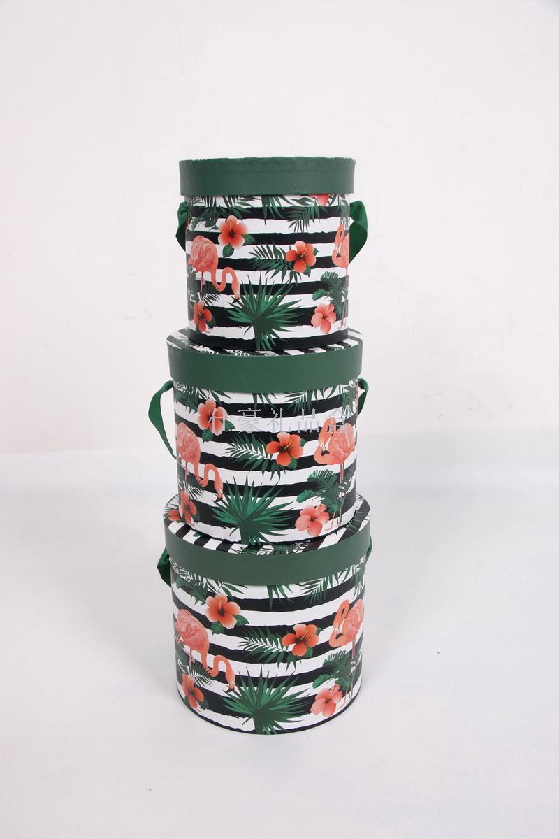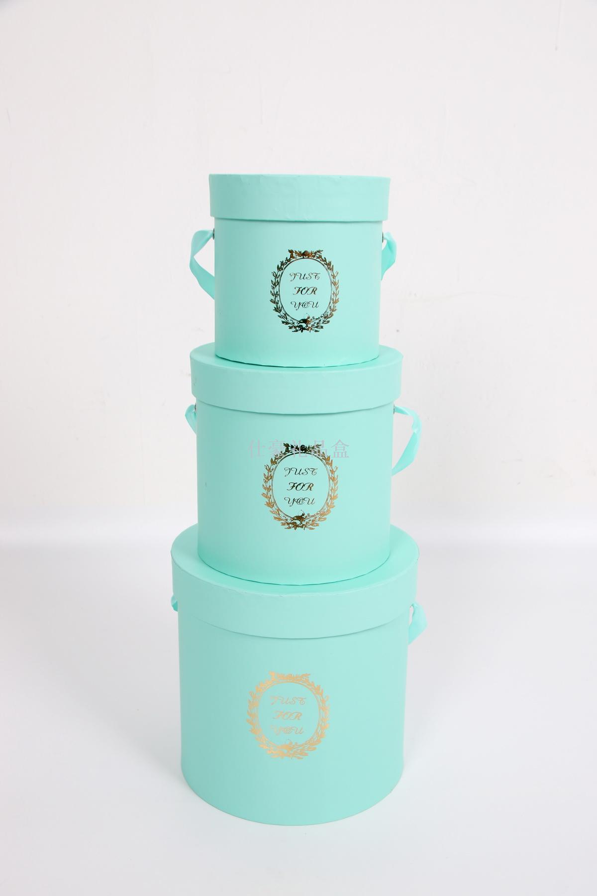 厂家直销圆形烫金三件套礼品盒带丝带带拎绳 花盒 礼物盒 喜糖盒