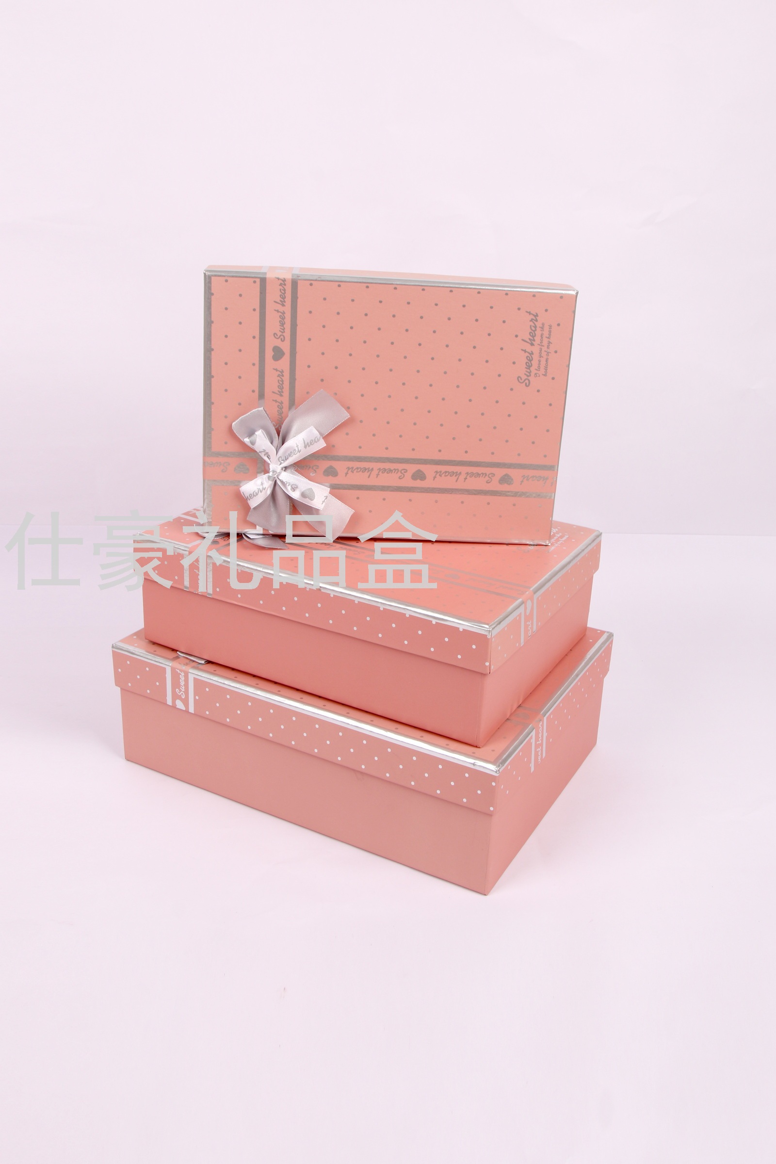 三件套正方形丝带蝴蝶结礼品盒首饰盒情人节高档礼盒防耐刮金葱盒