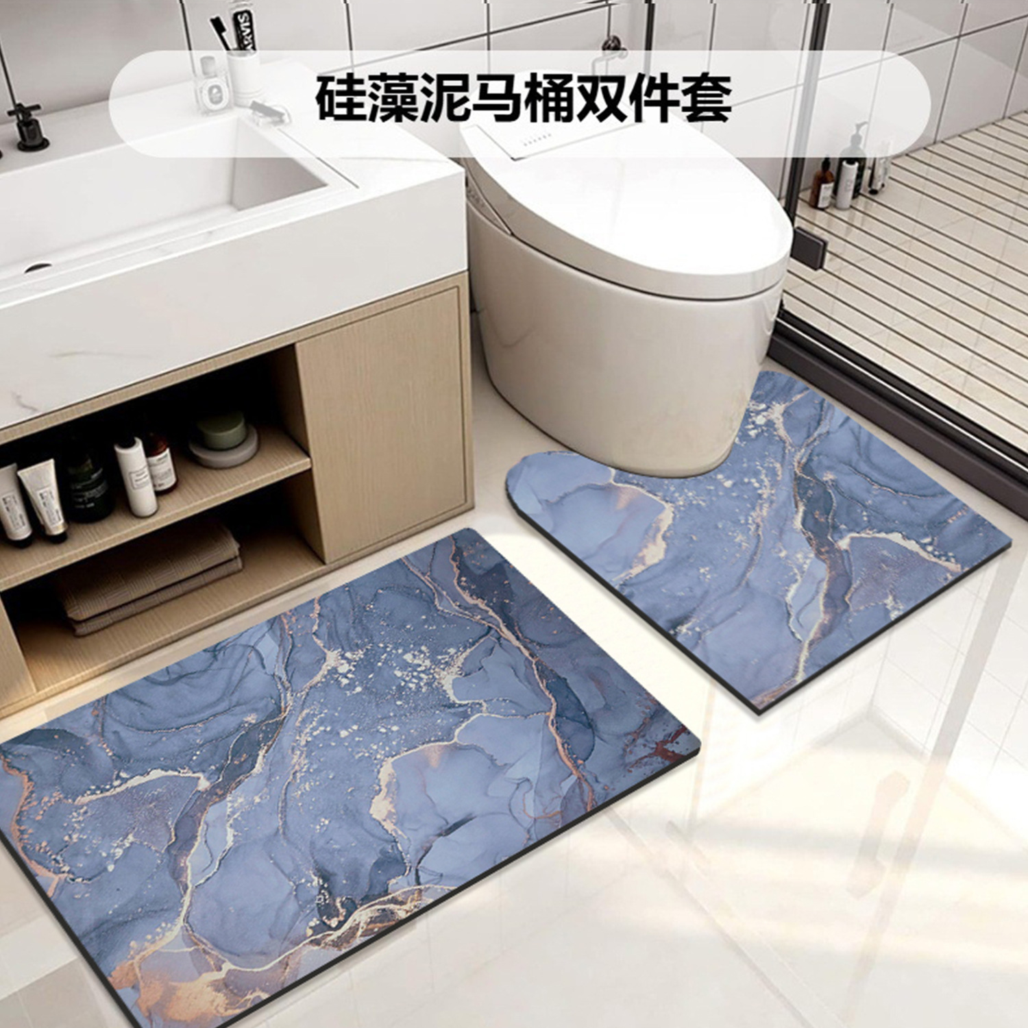 防滑垫地垫定制跨境俄罗斯厕所马桶U型垫大理石纹门口硅藻泥脚垫