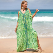 比基尼罩衫定位印花宽松大码连衣长袍防晒衣新款欧美沙滩外套长裙