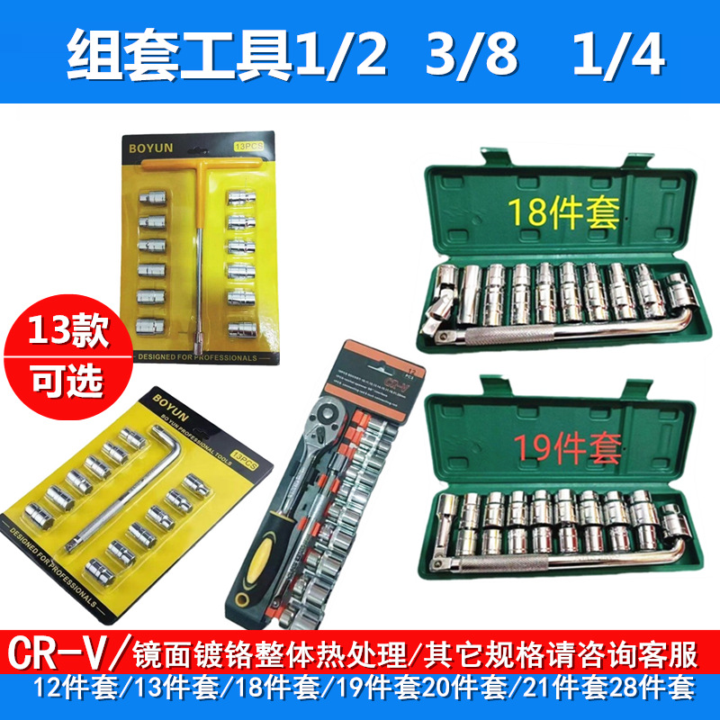 套筒汽修工具 1/2 3/8 1/4 大飞 中飞 小飞 快速扳手组套套筒