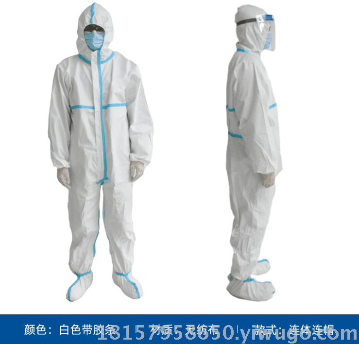 专供出口 防护服连体 一次性蓝色胶条医用民用65g高亢pp+pe