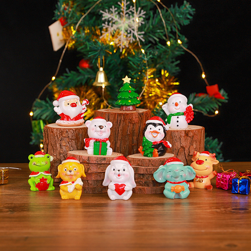 新款圣诞动物小摆件迷你可爱圣诞气氛布置饰品儿童小动物桌面装饰