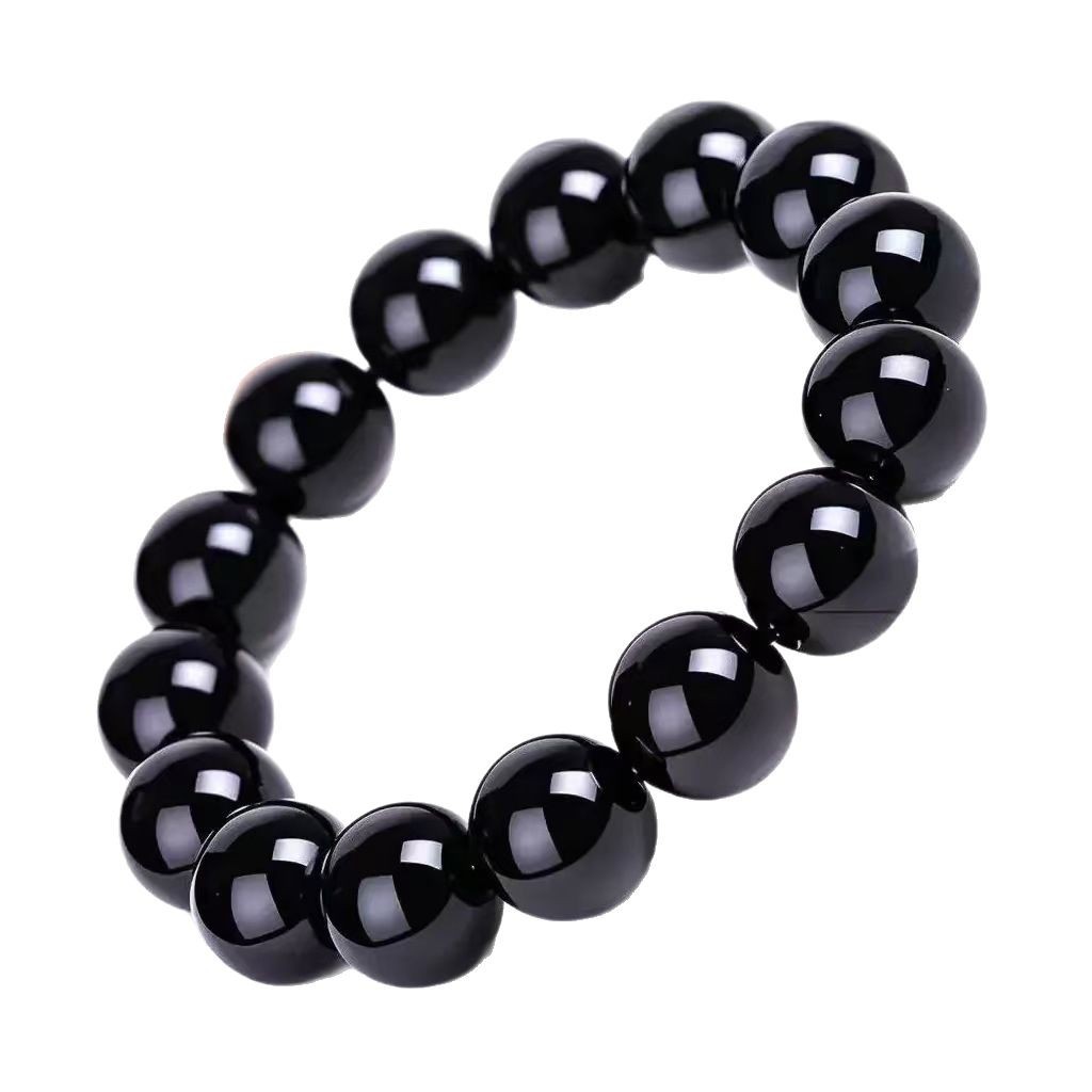 爆款仿黑曜石男女单圈手链时尚简约男女玻璃念珠手串直播人气饰品