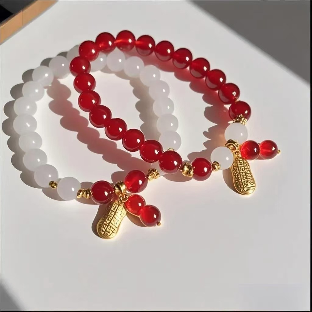 福利品天然仿和田玉手链 金貔貅莲蓬福牌四叶草琉璃手串饰品批发