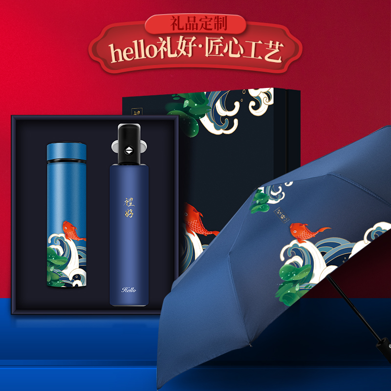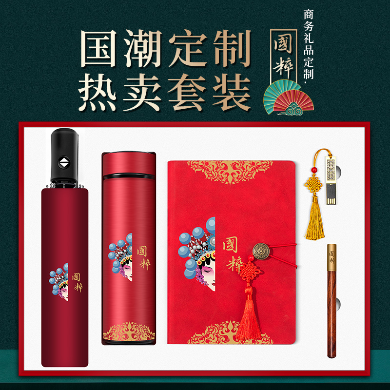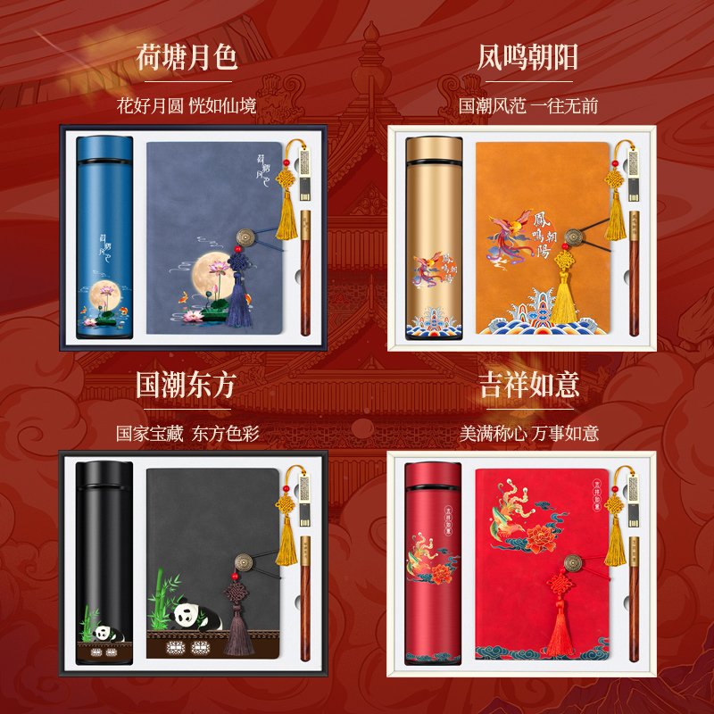 国潮中国风商务礼品套装定制logo笔记本保温杯笔雨伞充电宝书签