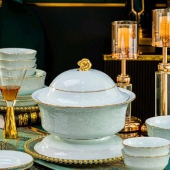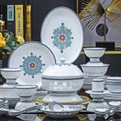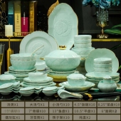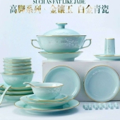 新品餐具套装景德镇陶瓷碗盘碟家用乔迁简约高级感青瓷乔迁新居组