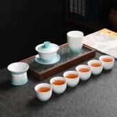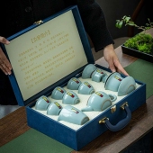 汝窑功夫茶具套装家用中式高档轻奢办公室客厅陶瓷盖碗茶杯泡茶壶