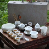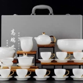 羊脂玉白瓷茶具套装礼盒装高档盖碗茶壶年会礼品定制logo商务礼品