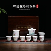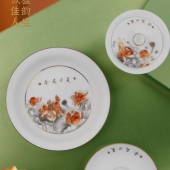 茶具套装家用轻奢羊脂玉福寿图高档办公室整套功夫防烫泡茶壶茶杯