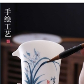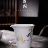 2024新款手绘高端羊脂玉公道杯茶海分茶器茶海陶瓷功夫茶具家用