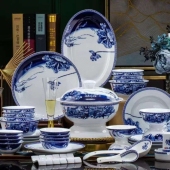红叶陶瓷景德镇碗碟套装56头家用青花瓷碗鱼碟子组合餐具中式碗盘