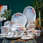 高温釉下彩碗家用2024新款碗碟套装家用景德镇骨瓷餐具套装碗盘筷