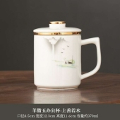 羊脂玉泡茶杯个人专用茶水分离杯办公水杯马克杯带盖陶瓷过滤茶杯