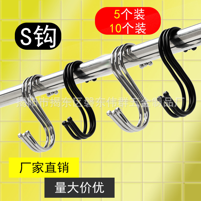 S钩s型挂钩衣服装金属挂钩超市五金铁挂吊钩厨房不锈钢日用挂勾子