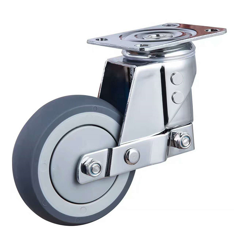 中型灰蓝色静音TPR带刹车轮子3/4/5/6/8寸重型万向轮大全承重脚轮
