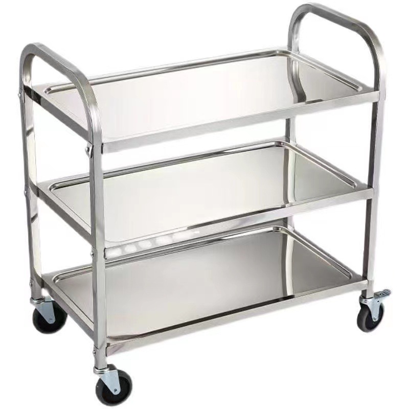 加厚不锈钢餐车小推车二三层酒店商用餐厅酒水车移动收送餐收碗车