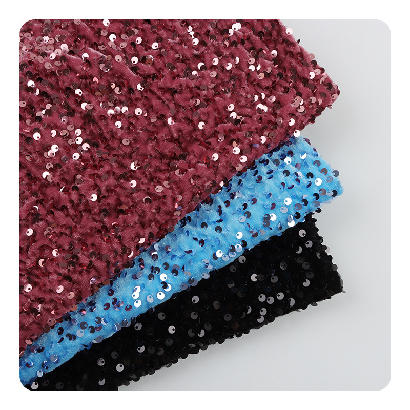 再生5mm绒布亮片绣现货珠片绣不倒绒绣花布秋冬服装时装连衣裙