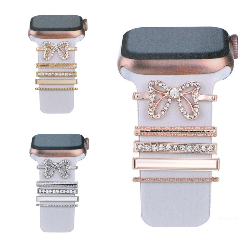 适用苹果apple watch 手表装饰扣硅胶表带蝴蝶结镶钻手表带装饰环