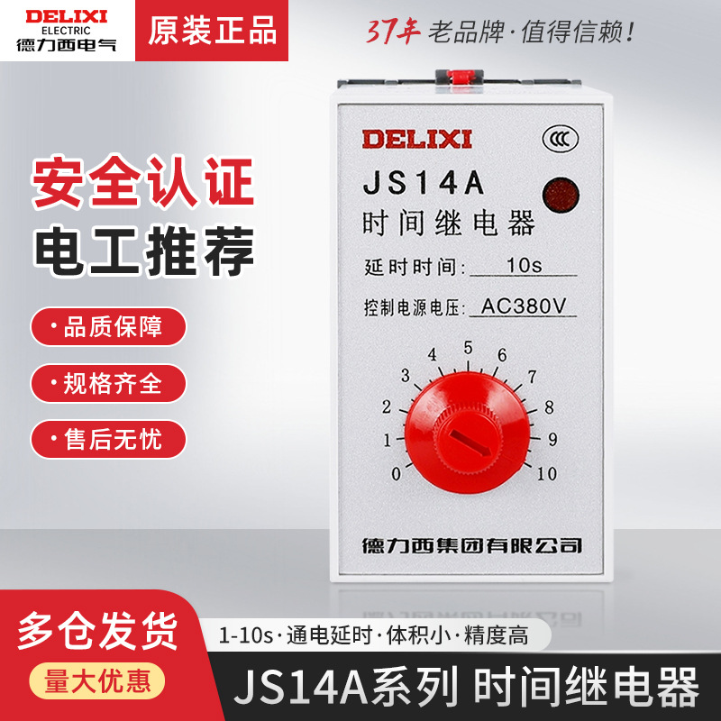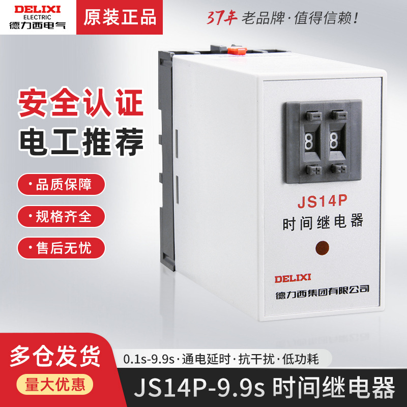 德力西时间继电器JS14P通电延时0.1S-9.9S三相380V延迟启动 9.9秒