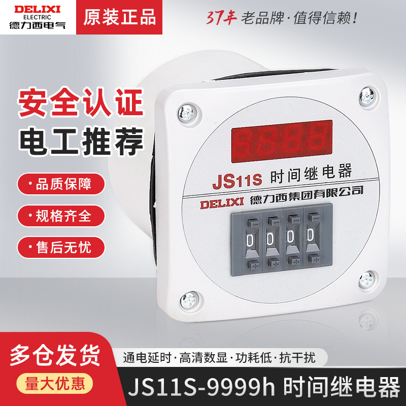 德力西时间继电器JS11S三相380V 220V通电延时0.01S-9999H秒 可调