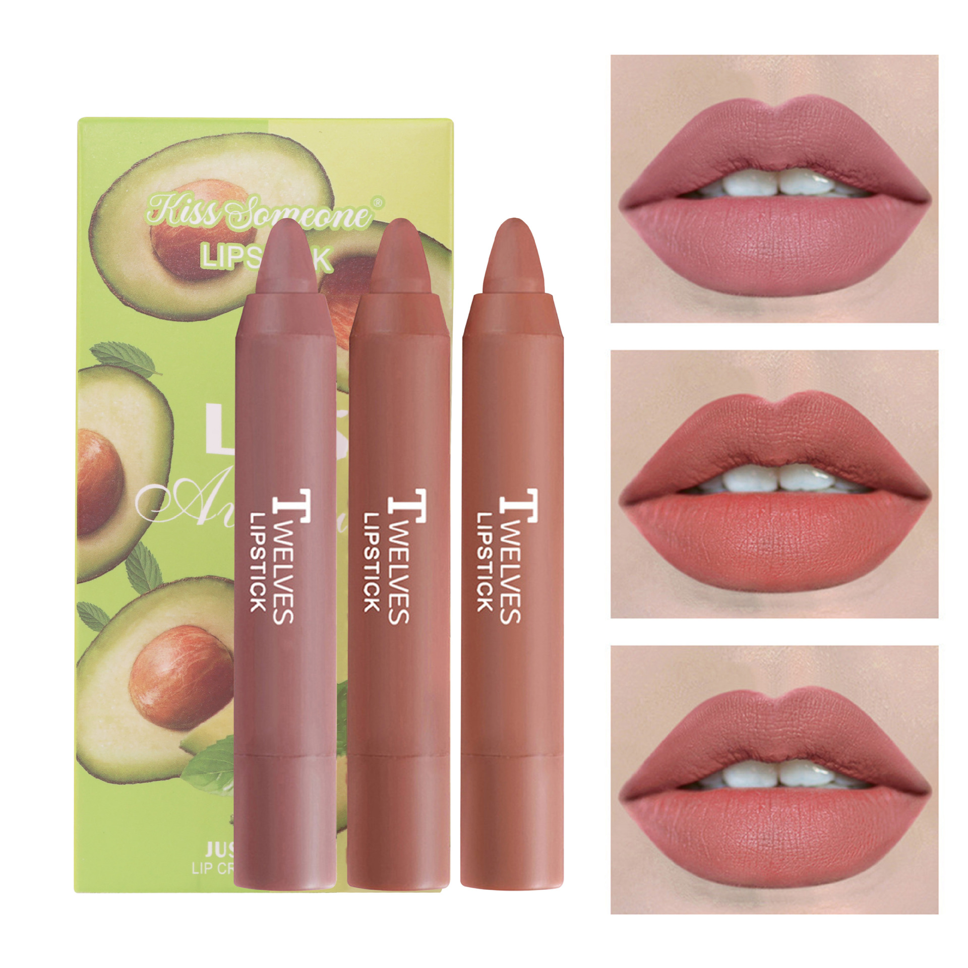 跨境彩妆蜡笔口红3支装小套盒口红哑光雾面丝绒空气口红笔化妆品