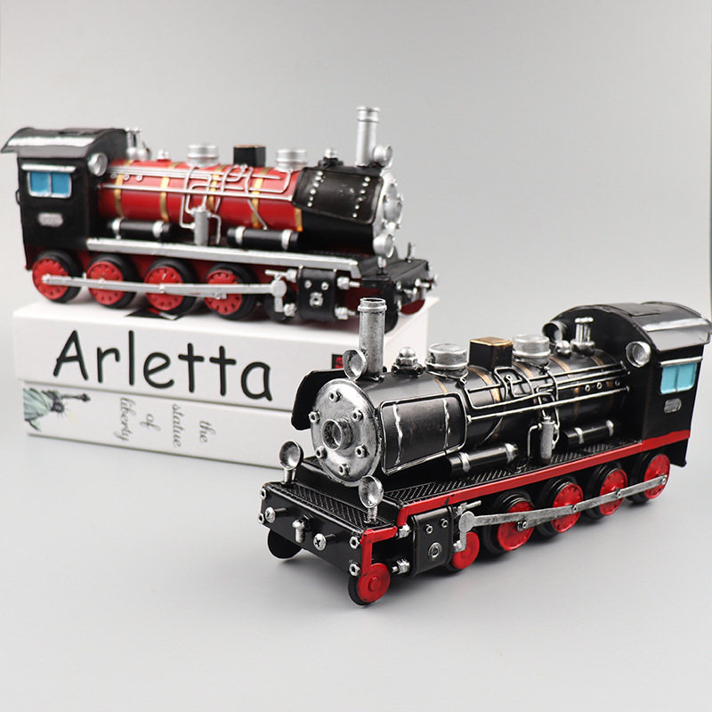 仿真蒸汽火车头模型铁皮复古老式手工艺品橱窗柜收藏装饰摆件道具