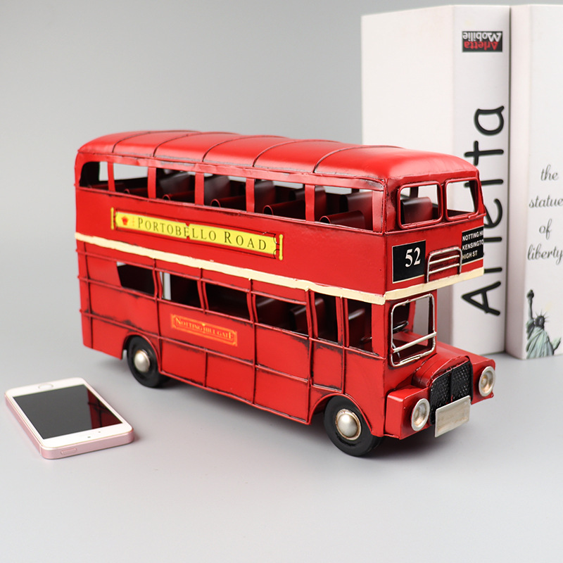 旅行英伦巴士车模型铁皮手工艺品怀旧客厅酒吧窗柜装饰品收藏摆件