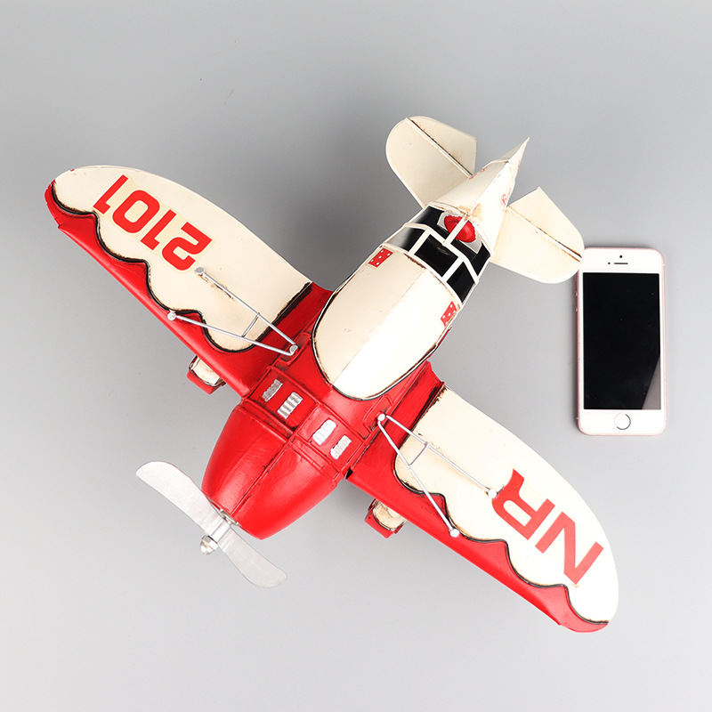 美式螺旋桨式飞机模型铁皮手工艺品客厅橱窗柜收藏摆件装饰品挂件