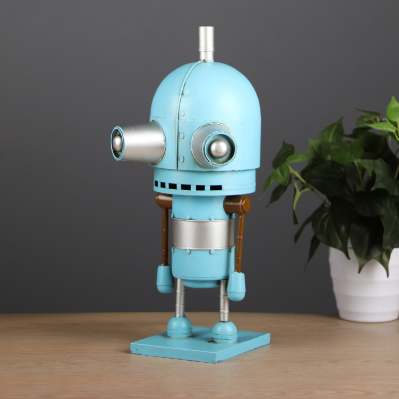 仿真小蓝人机器人模型铁皮工艺品创意酒吧橱窗陈列道具装饰品摆件