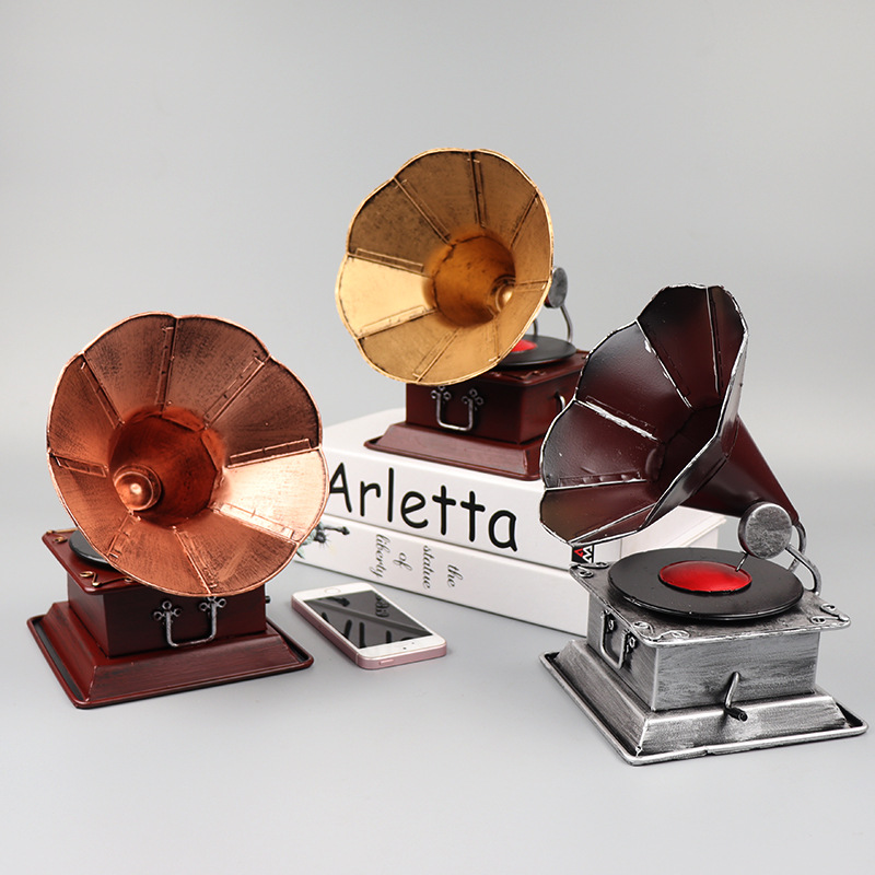 复古黑胶留声机模型摆件怀旧客厅装饰金属工艺品摄影道具厂家直销