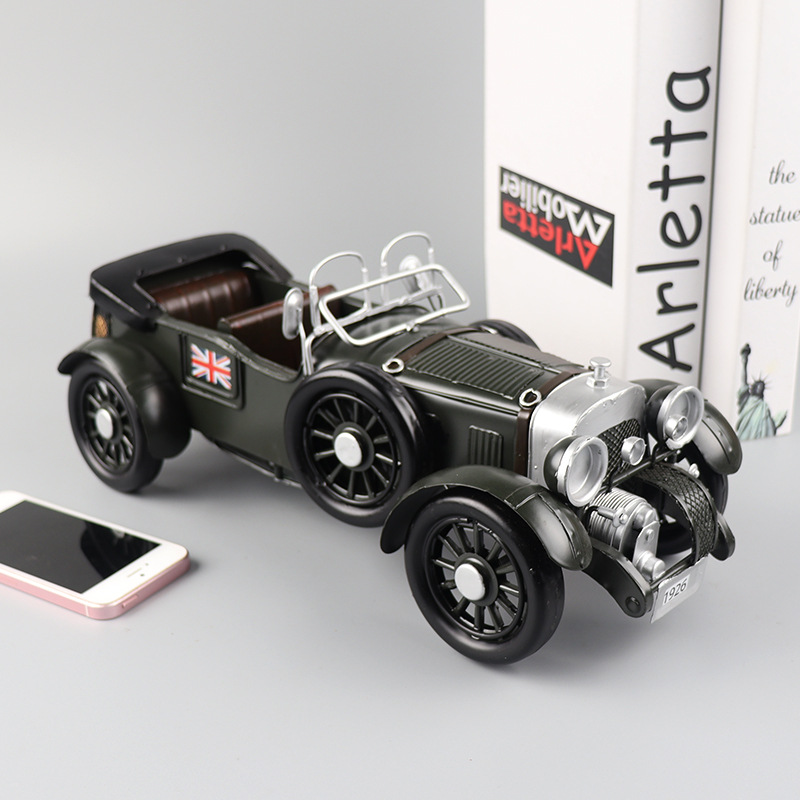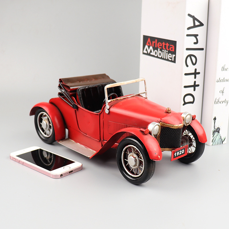 复古敞篷跑车老爷车模型铁皮工艺品客厅橱窗柜怀旧收藏装饰品摆件