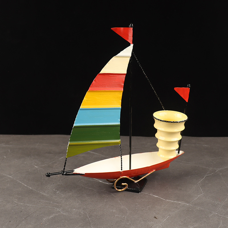 一帆风顺帆船笔筒摆件铁皮手工艺品创意办公室橱窗柜书房桌面装饰