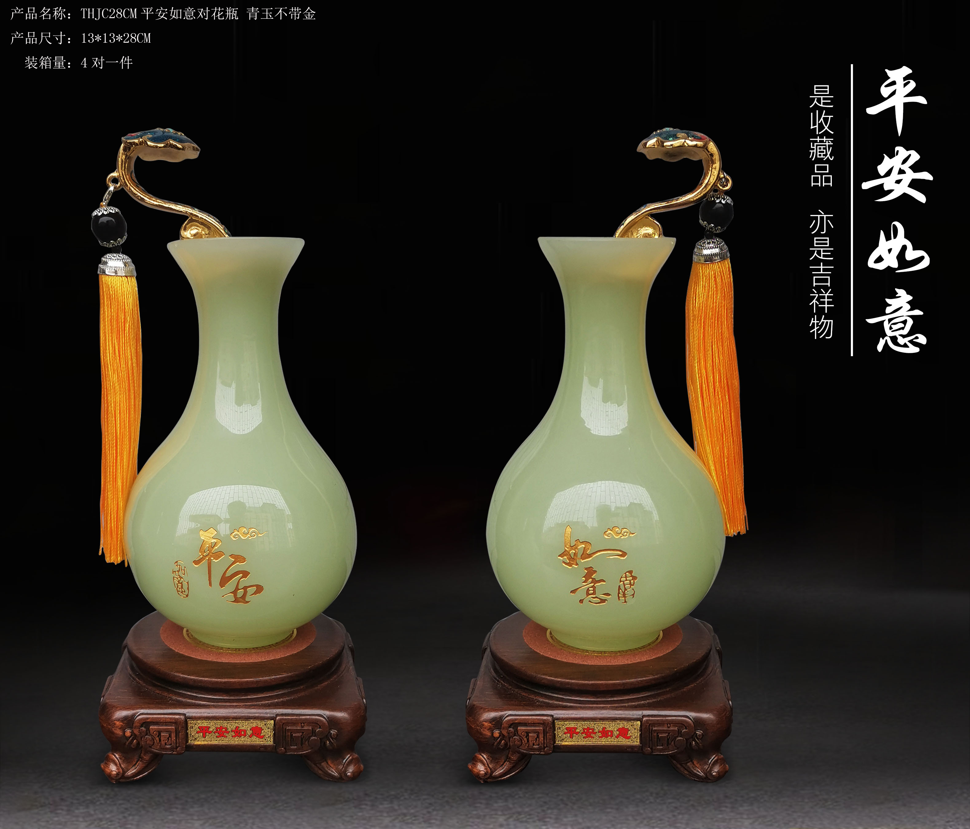 博达白玉珐琅彩人生如意花瓶中式工艺品电视柜客厅摆件家居装摆件