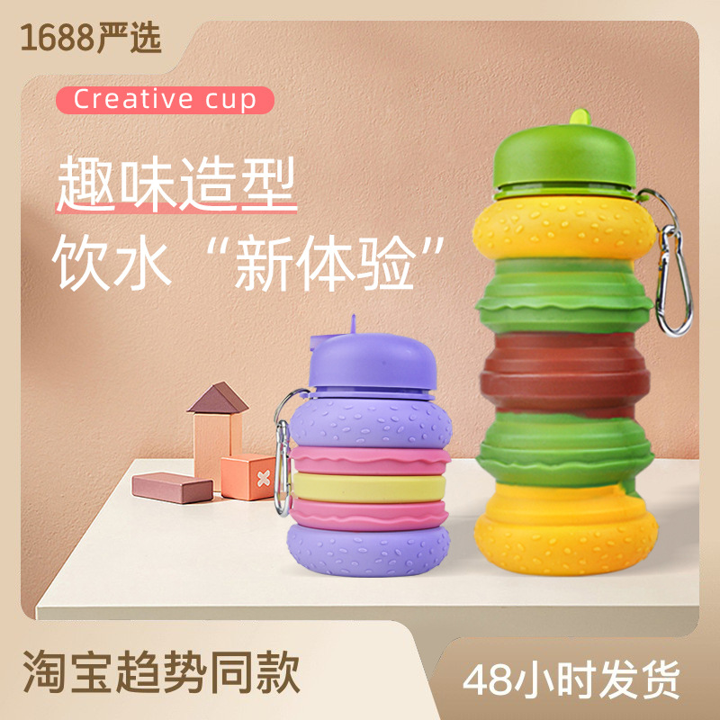 儿童创意水杯 便携防摔防漏硅胶水杯 硅胶伸缩折叠杯户外运动水壶
