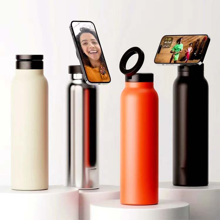 亚马逊磁吸保温杯不锈钢运动水壶手机支架追剧拍照高颜值保冷杯子