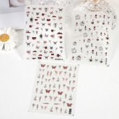 玫瑰日系带胶半透玫瑰花蝴蝶美甲贴纸超薄防水带胶指甲装饰品贴花