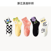 鹿米袜子短袜男ins潮流插画夏季薄款浅口休闲男女透气棉袜船袜女