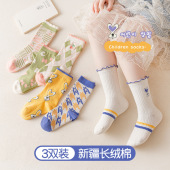 鹿米新款袜子女袜百搭ins潮中筒袜可爱卡通立体花朵郁金香女棉袜